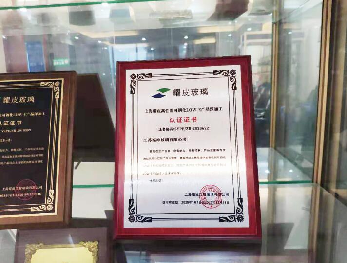 12月28日,我司获得上海耀皮颁发的高性能可钢化LOW-E产品深加工认证证书。