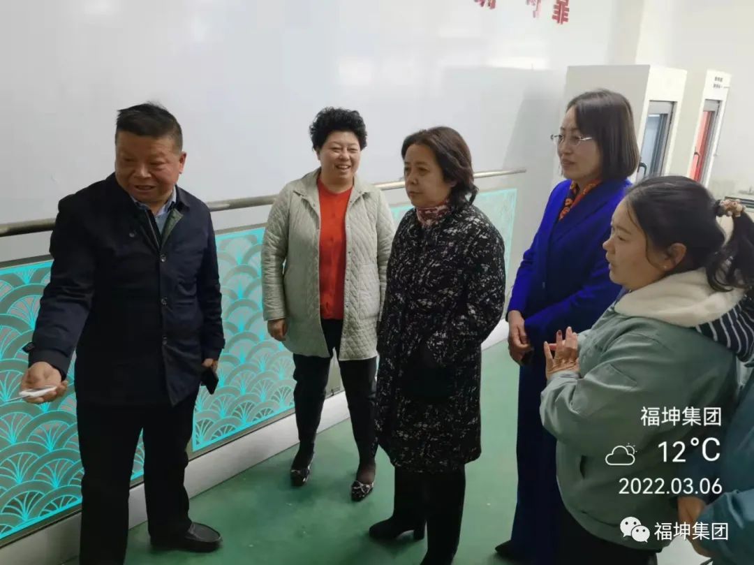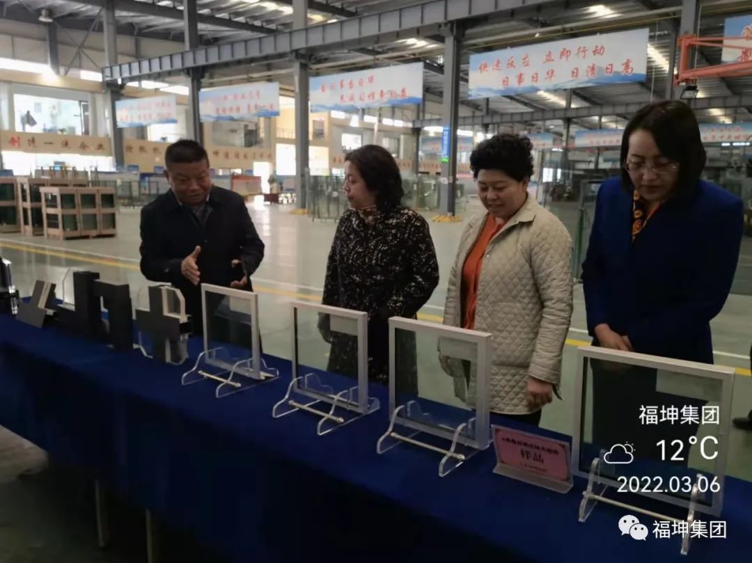 黄海燕主席在洪总和我司妇女代表的陪同下,参观了我司企业文化长廊、生产线,听取我司防火玻璃、电梯防火玻璃、冷月光玻璃、热镜中空玻璃等新产品研发生产情况介绍。