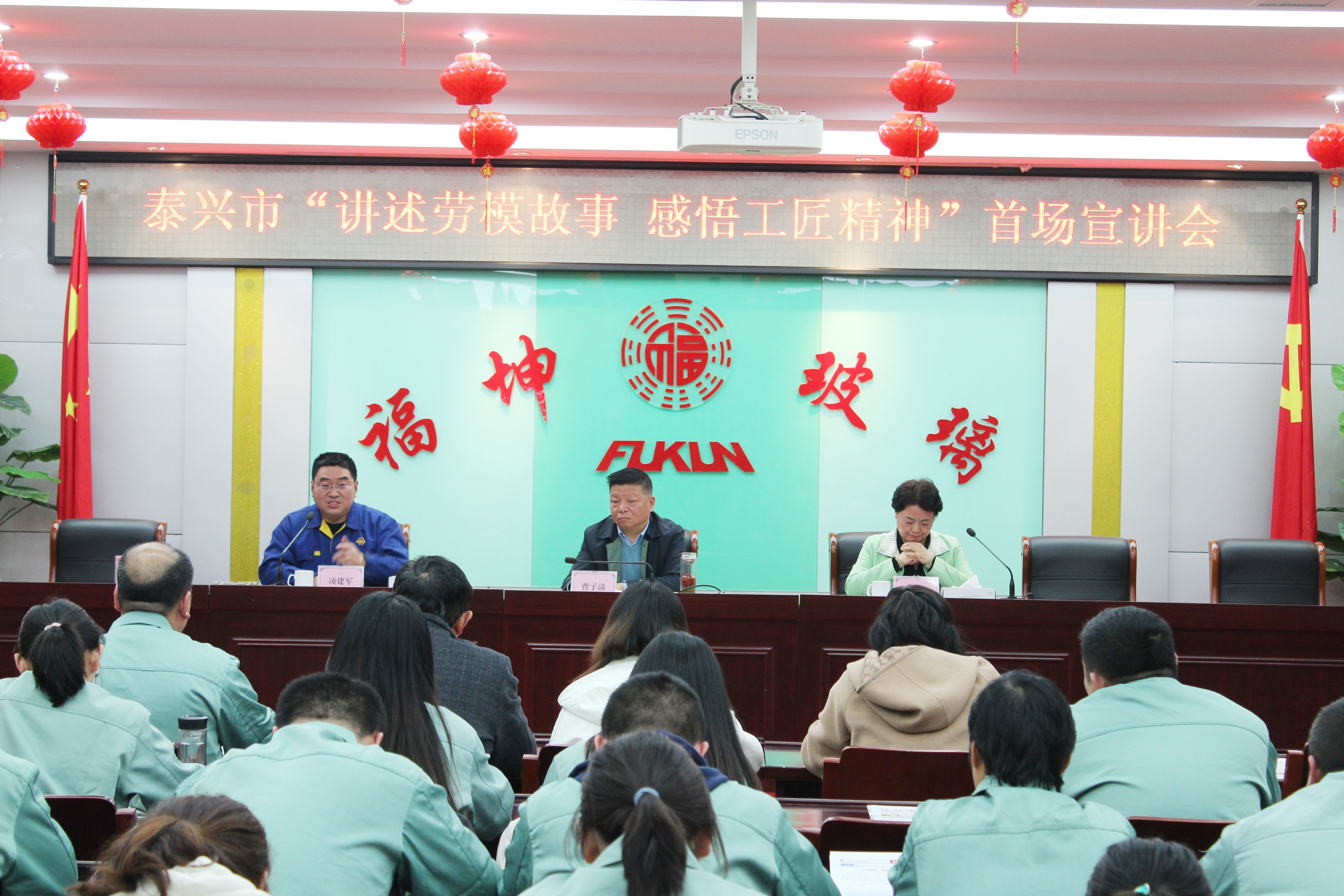 4月4日下午,泰兴市“讲述劳模故事、感悟工匠精神”首场宣讲走进福坤集团。