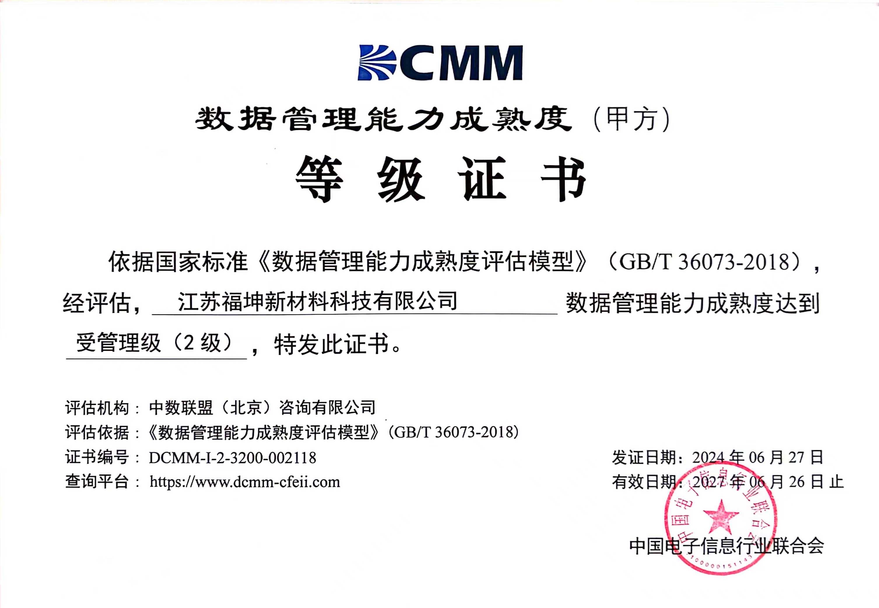 6 月,我司顺利通过了中国电子信息行业联合会 DCMM 数据管理能力成熟度贯标等级认证。这标志着我司在企业数据管理与应用的成熟度方面,已达到行业内相对先进的水平。
