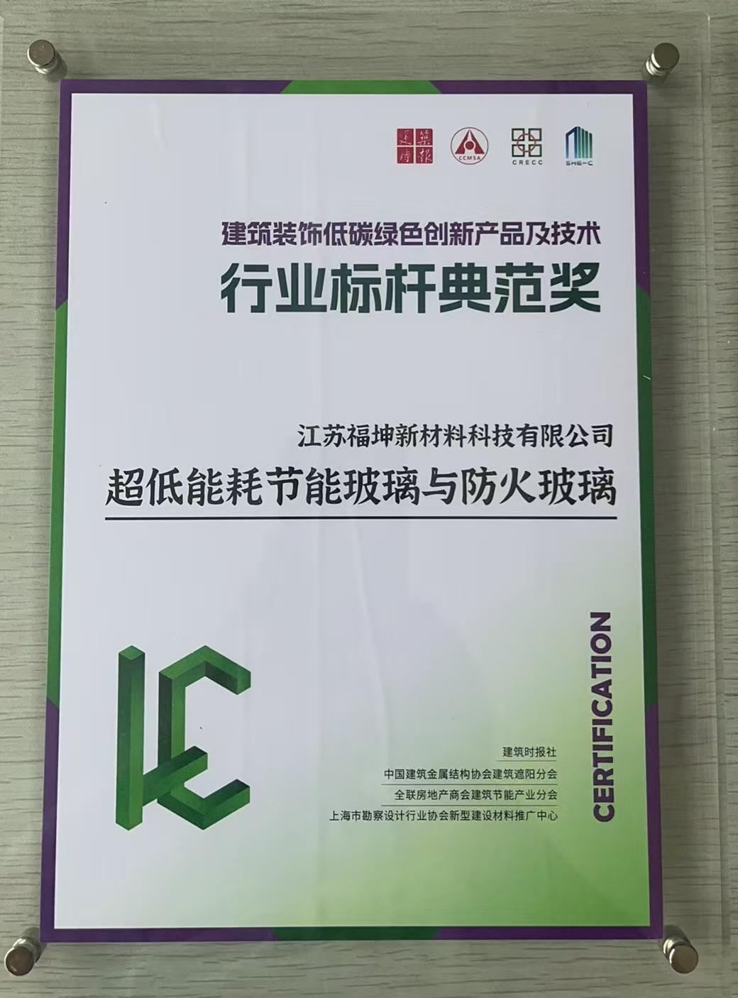 近日,在建筑装饰行业的一次重要评选活动中,我司凭借在超低能耗节能玻璃与防火玻璃领域的卓越表现,荣获 “建筑装饰低碳绿色创新产品及技术行业标杆典范奖”。此次评选由建筑时报社、中国建筑金属结构协会建筑遮阳分会、全联房地产商会建筑节能产业分会以及上海市勘察设计行业协会新型建设材料推广中心联合举办。