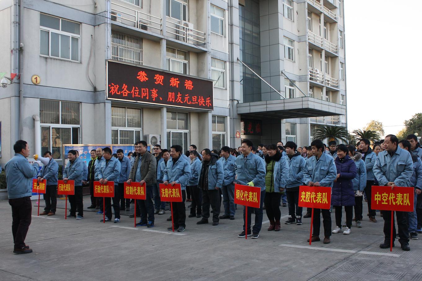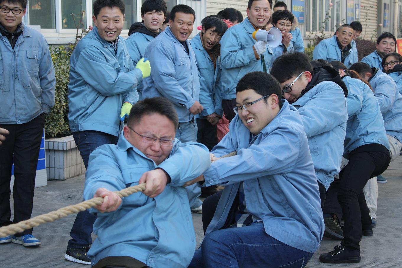 各部门列队准备参加拔河比赛