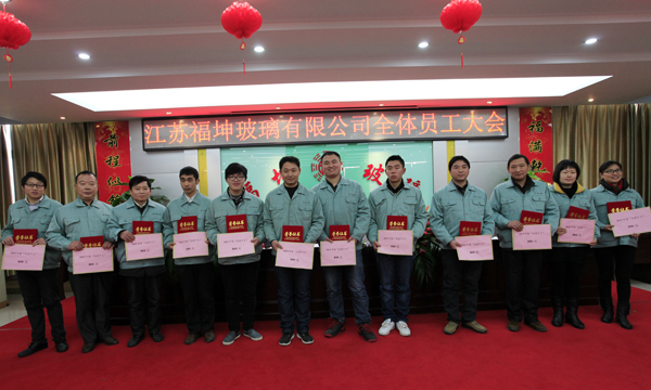 2015年,在公司洪总的正确领导下,全体员工团结一致,群策群力,艰苦奋斗,同心开拓,涌现出了一大批管理科学、敢于创新、成绩突出的先进集体和兢兢业业、勤勤恳恳、尽职尽责、用于奉献的先进工作者。为了鼓励先进,树立典型,激发干部、职工在逆境中奋勇前进的热情,推动全公司整体工作再上新台阶,经公司研究决定,对以下2015年度涌现出的先进集体和先进工作者予以表彰奖励: 一、先进集体三名(排名不分先后) 销售部、中空小线班组、切割班组 奖金1200元,颁发奖状;