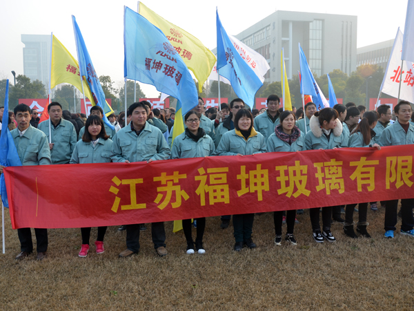 2015年12月31日,由业务技术部长丁荣带队,我公司一行共30人到泰兴体育馆,应邀参加由泰兴市委市政 府主办,泰兴市体育局承办的“泰兴市庆元旦万人健身长跑”活动,在市领导的带领下,福坤公司代表队队列整齐、人员精神抖擞、踏着整齐有力的步伐参加长跑,并喊出“福坤福坤,福满乾坤”的口号,充分展示福坤人素质,展现福坤形象。长跑起点于市体育中 心,中途经过镇海路、文昌路、文江路、国 、庆东路,终点到银杏公园,全程约2.4公里。